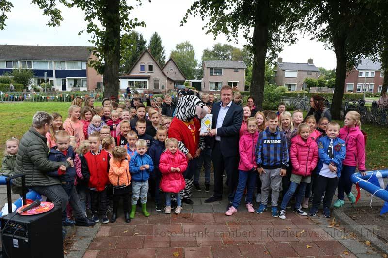 Vandaag, woensdag 20 september, werd het veiligheidslabel officieel onthuld door wethouder Robert Kleine van de gemeente Emmen in samenwerking met Seef de Zebra van het VVN. Tezamen met de hulp van de kinderen werd het label trots op de gevel van de school geschroefd.