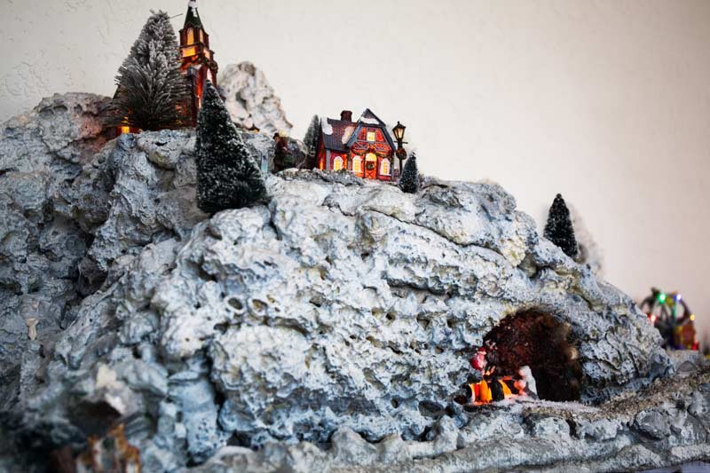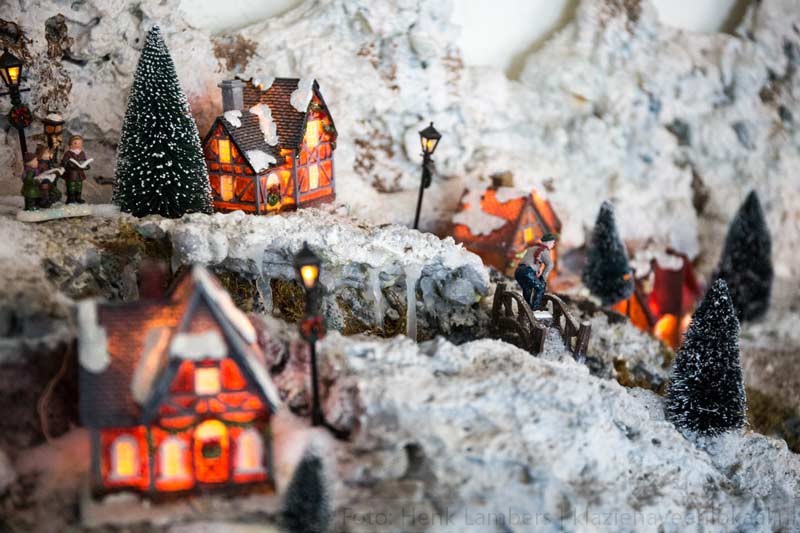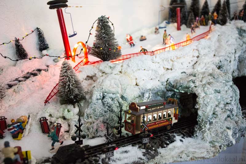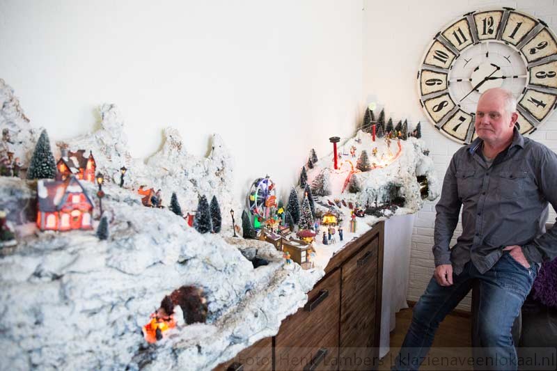 Straks als alles eenmaal opgebouwd is, hij mag pas na de komst van Sint en Piet beginnen te bouwen, meet het gehele opbouwde tafereel ruim drie-en-een-halve meter in de woonkamer. Hiervoor moet het dressoir leeggeruimd, en een extra plank ernaast aangebracht worden. Vele stekkerdozen en lampjes moeten worden aangesloten, echt, een tijdverslindende hobby…