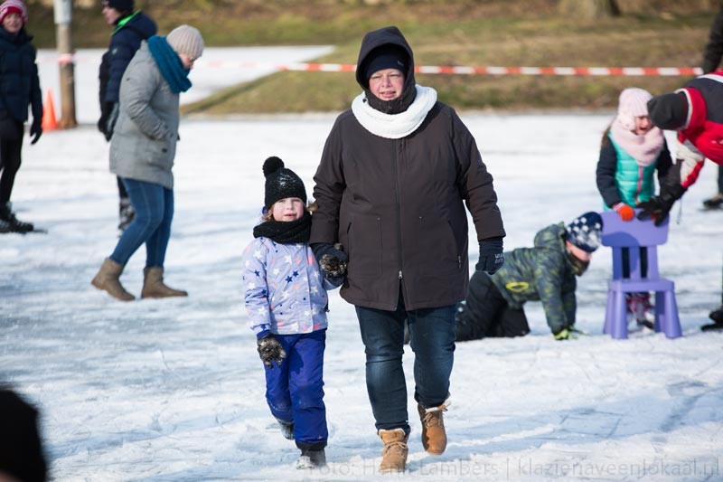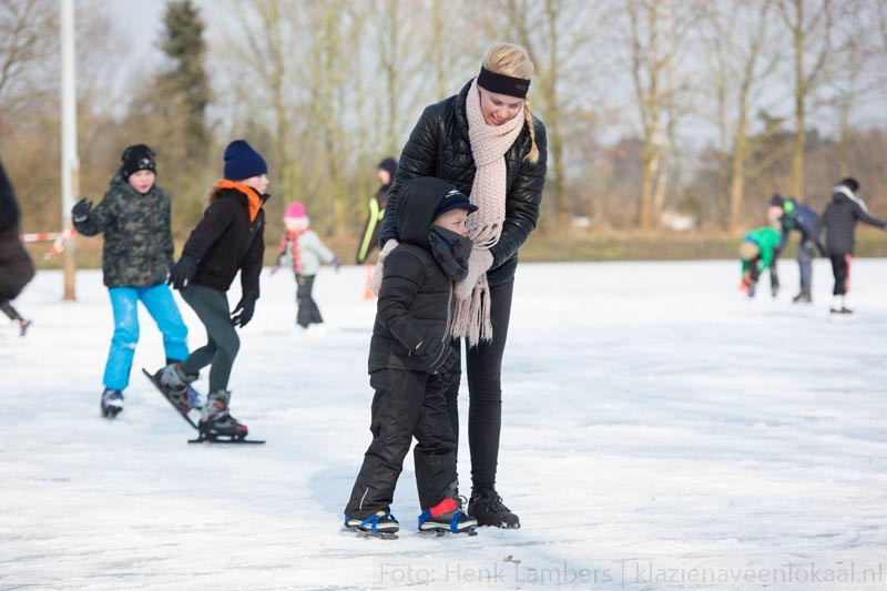 Het is dan ook geen wonder dat velen de gang maakten naar het recreatieterrein De Weidewaard. Vanaf 10.00 uur woensdagmorgen was de ijsbaan, op het noordelijke gelegen gedeelte na, geopend. Daar was de ijslaag nog niet voldoende aangewassen, en was afgezet met pylonen. Tot s’avonds 21.00 uur is de ijsbaan van Barger-Oosterveen geopend, zolang er goed ijs is… Kijk voor actuele informatie even op hun Facebookpagina.