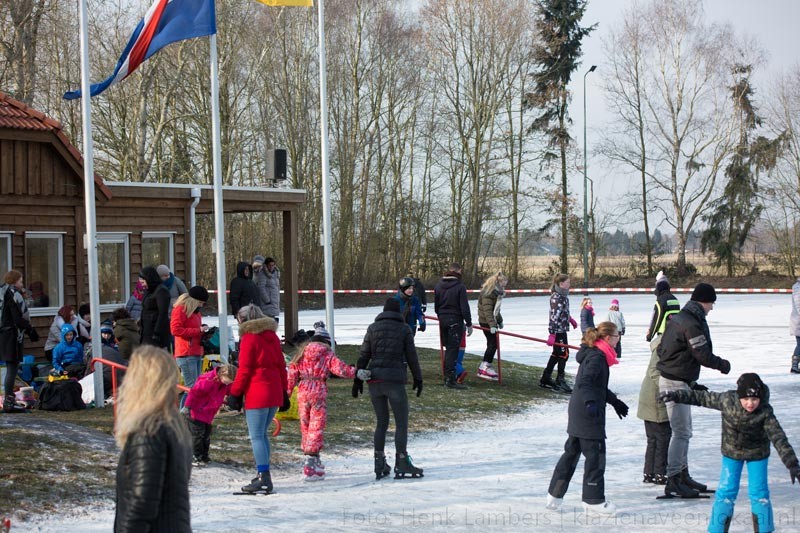 Ondanks een ijskoude Noord-Oosten wind is er toch veel schaatspret op de ijsbaan van ijsvereniging Barger-Oosterveen op het recreatiepark Weidewaard. Het is vandaag de laatste februaridag in 2018.