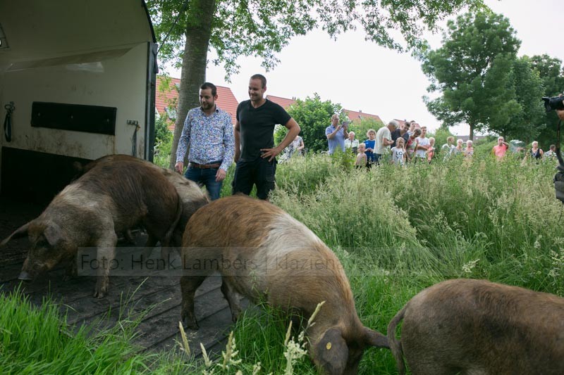 Wethouder van der Weide liet namens de gemeente Emmen Akkervarkens ‘los’ aan de Jagersweg in Klazienaveen. Er heerst daar op een bosperceel de Japanse duizendknoop en de Akkervarkens zullen deze op een natuurlijke wijze gaan bestrijden.