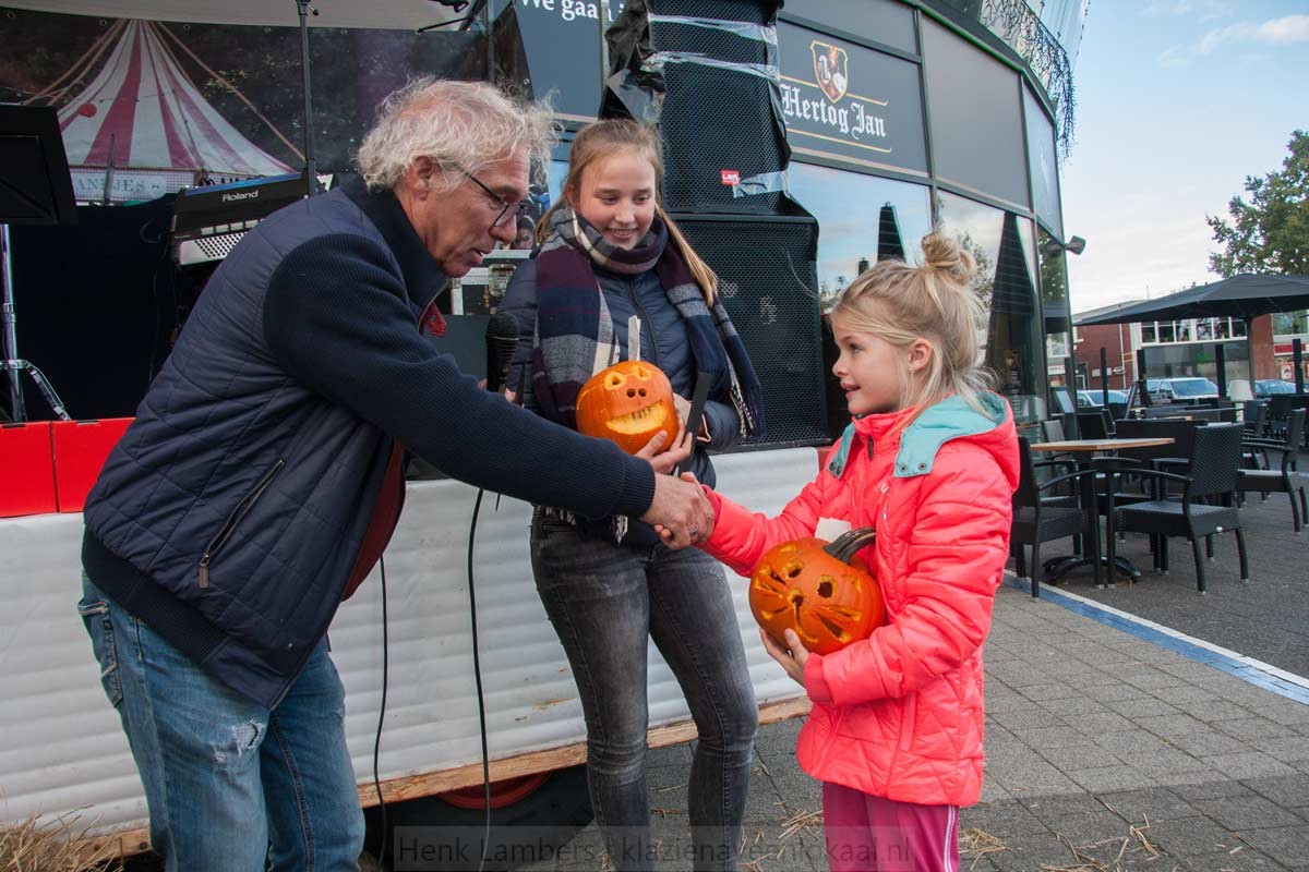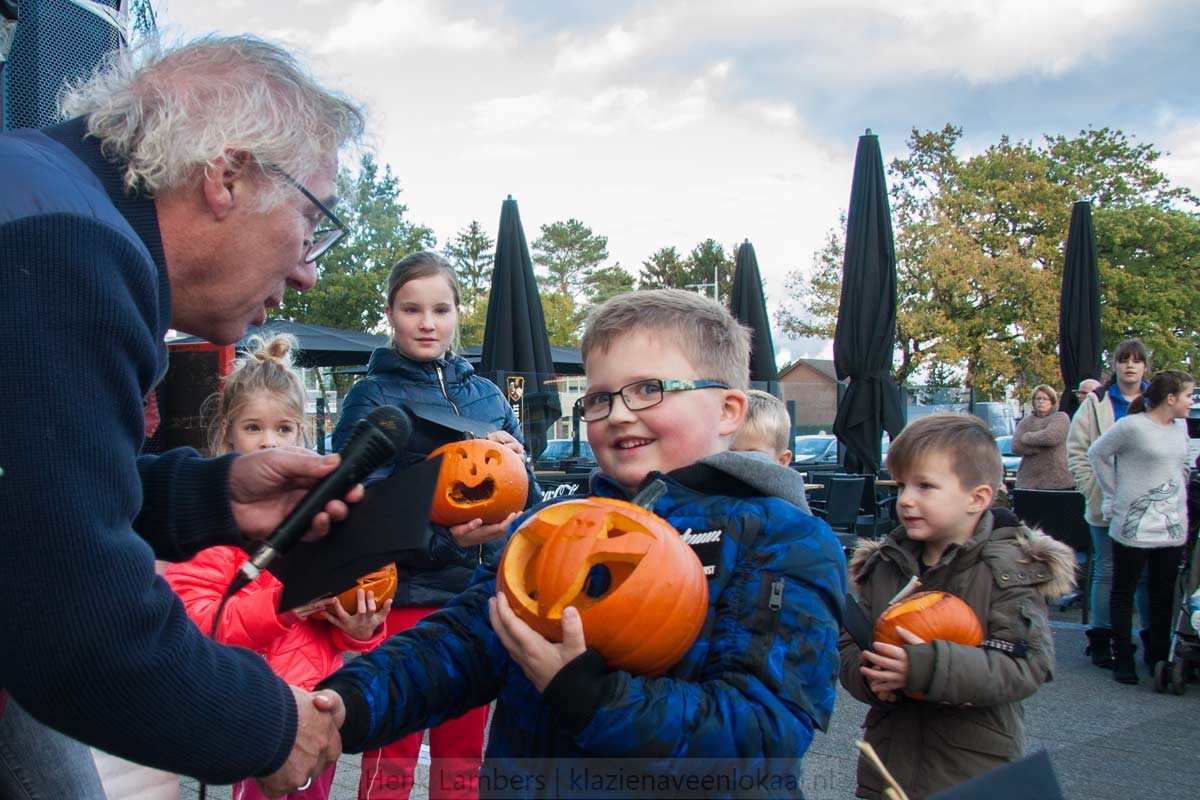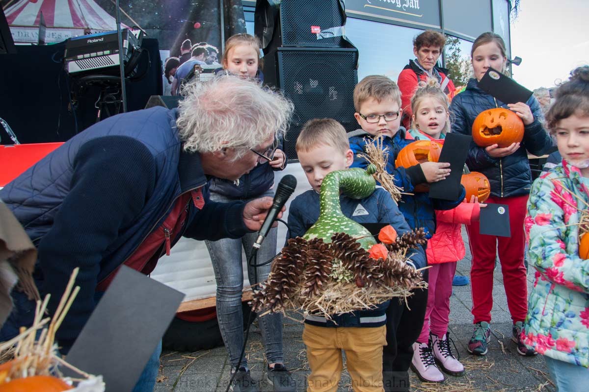 Een professionele jury, die de afgelopen vijf jaar al heel wat bewerkte pompoenen in dit jaargetijde voorbij hebben zien komen. Iedere prijswinnaar die bekend gemaakt werd, moest haar of zijn bewerkte pompoen ophalen en naar het podium komen. En sommige pompoenen waren best wel zwaar. Soms moest er een ouder aan te pas komen om het gevaarte te dragen. Zo werden de prijzen echt wel letterlijk en figuurlijk in de wacht gesleept.