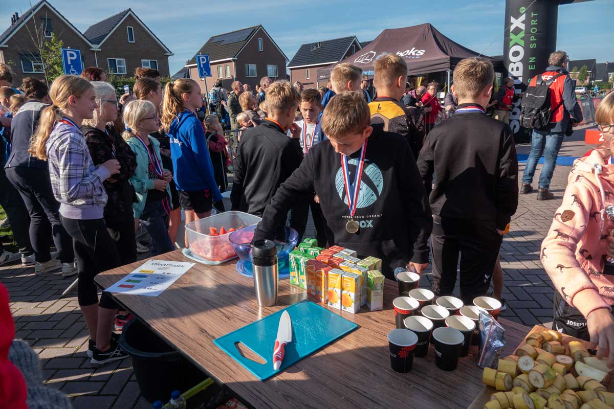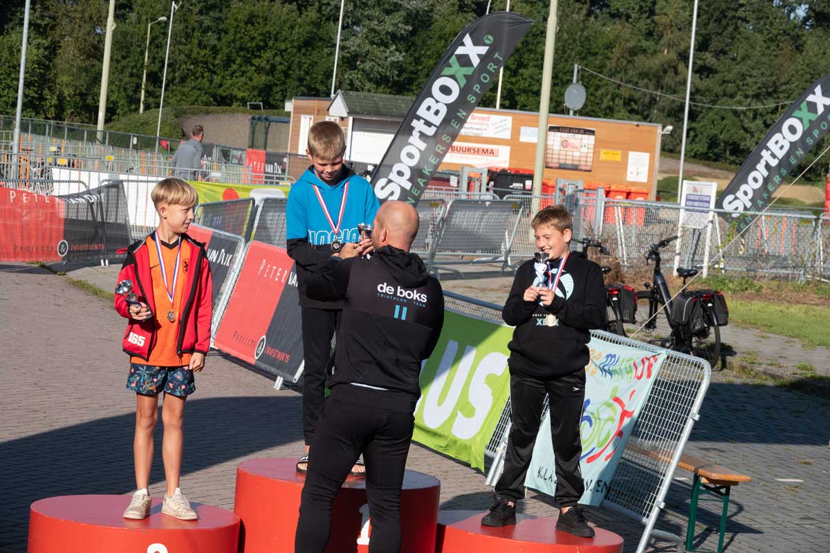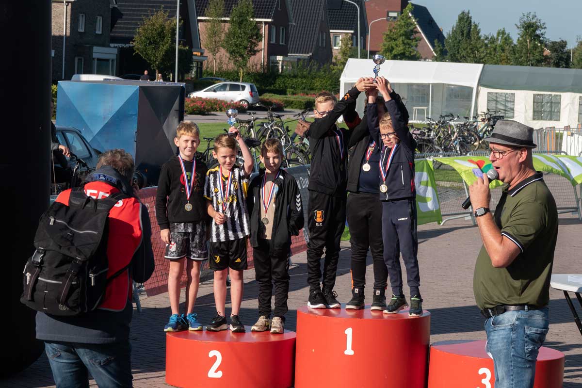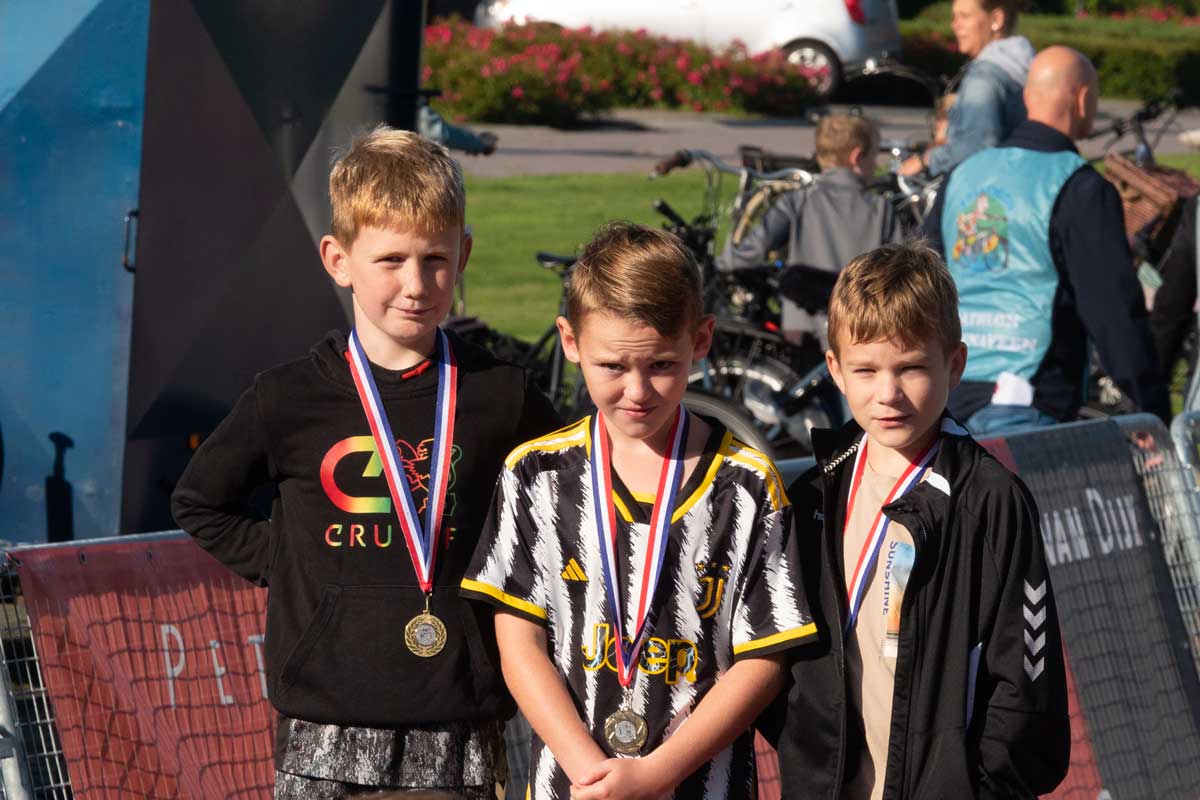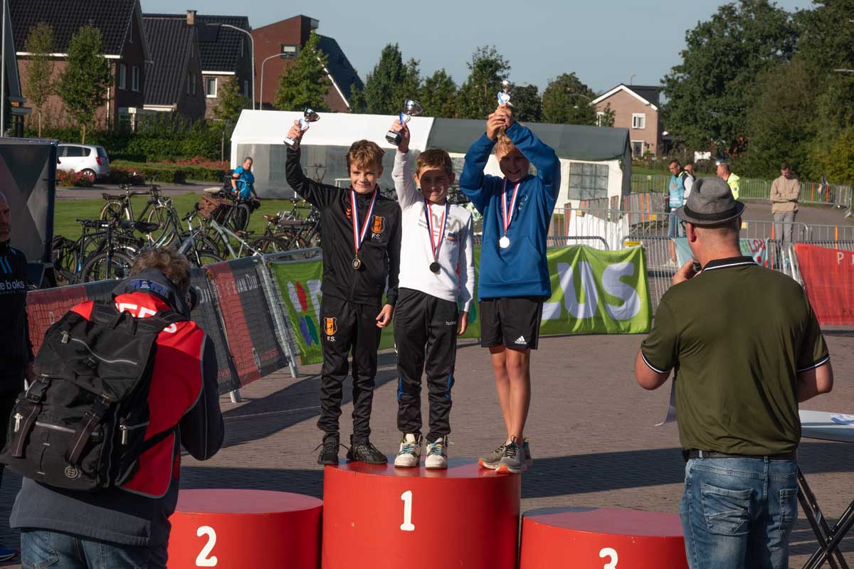 Het was de eerste Kindertriathlon die op een zelfstandige wijze, los van de grote Triathlon Klazienaveen, gehouden werd. De wedstrijdverslaglegging en prijsuitreikingen werd keurig aaneen gepraat door Harold Stuiver van de lokale Toneelgroep Kruidenveld. Dankzij de vele vrijwilligers werd het een geslaagd evenement. Meer foto’s vind u onderaan.