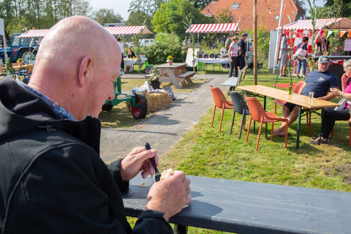 Het werd een waar culinair festijn. Zeer veel gerechten, niet alleen uit eigen dorp en streek, maar ook uit andere werelddelen waren er te proeven en te koop. Van de jagers met eigengemaakte droge ganzenworst, groenten, fruit tot en met Loempia’s en Sangria. Gewoon teveel om op te noemen. En met een tweetal leuke verlotingen met een aantal leuke prijsjes, was de opkomst van belangstellenden bijzonder hoog. Maar natuurlijk speelde ook het fantastisch mooie weer een belangrijke rol mee.