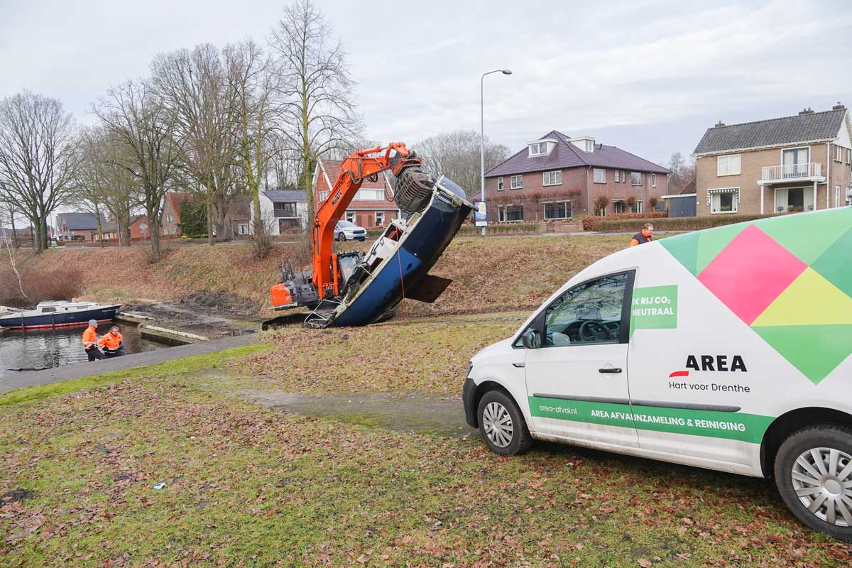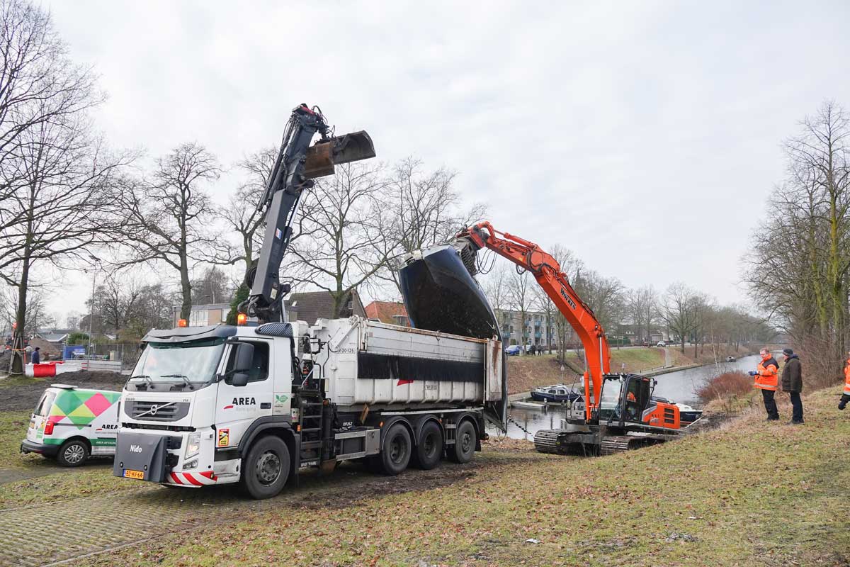 Vanmorgen is Area begonnen met het verwijderen van de oude verwaarloosde boten en om andere rommel te verzamelen, zoals een fiets, met vrachtwagens af te voeren. De foto’s spreken voor zich.